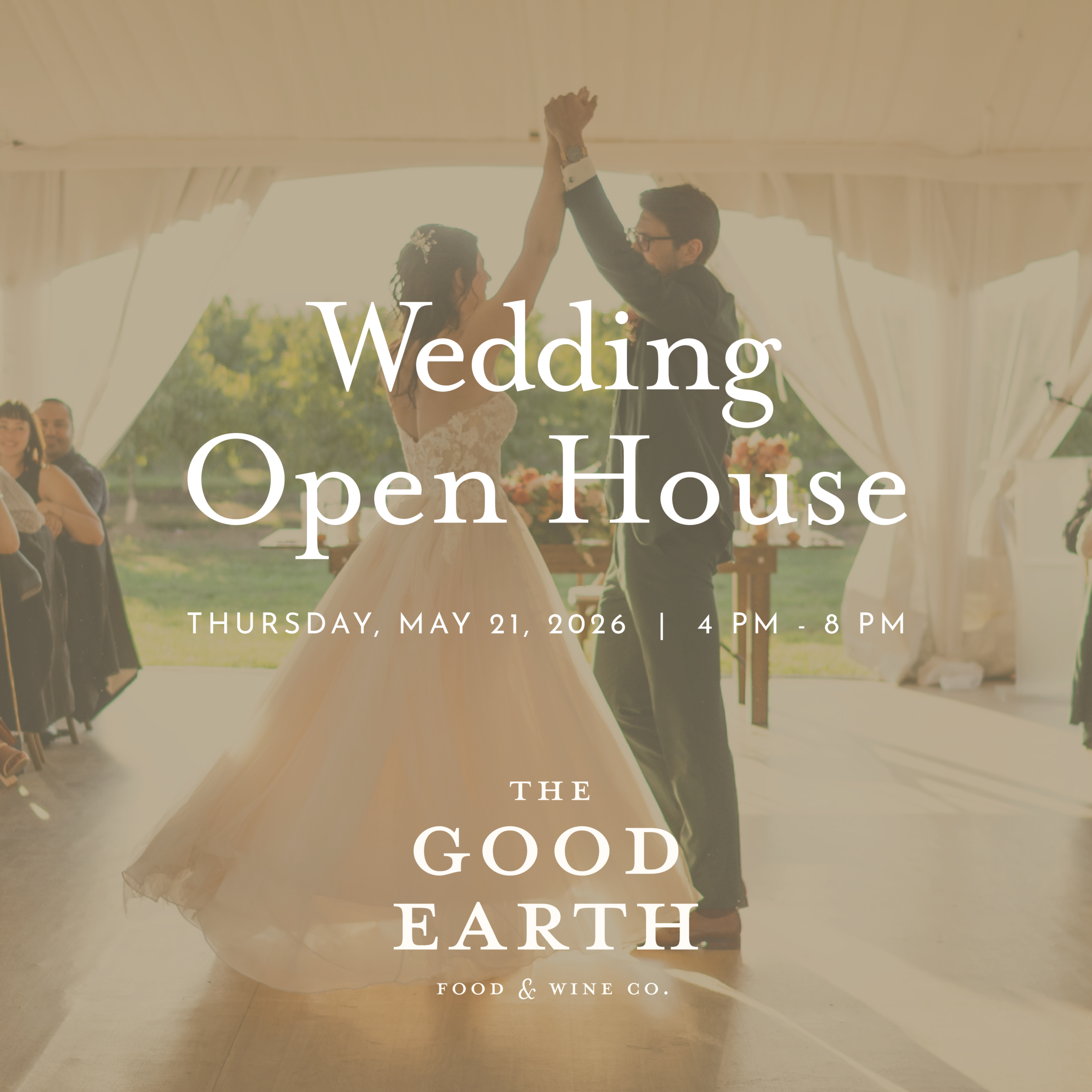 Join us for a special evening at The Good Earth to explore our stunning vineyard and venue for our Wedding Open House on Thursday, May 21st, 2026.