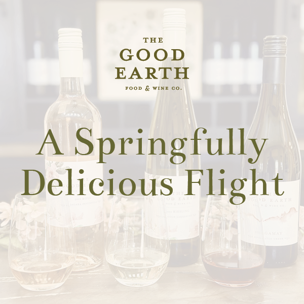 For the month of April, we’re pouring a delightful feature flight of wines for Easter gatherings or just to celebrate warmer weather! Come to The Good Earth for a flight of our Spring favorites for the half price of $10.00. Our spring flight includes 2oz each of our estate Riesling, Rosé and Gamay Noir.