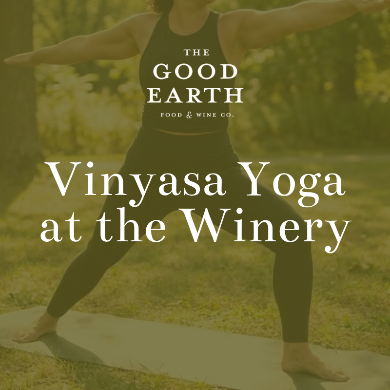 Join us for a summer evening to unwind and relax for a one-hour Vinyasa Yoga session in the Good Earth vineyard on Thursday, June 25th, 2026.